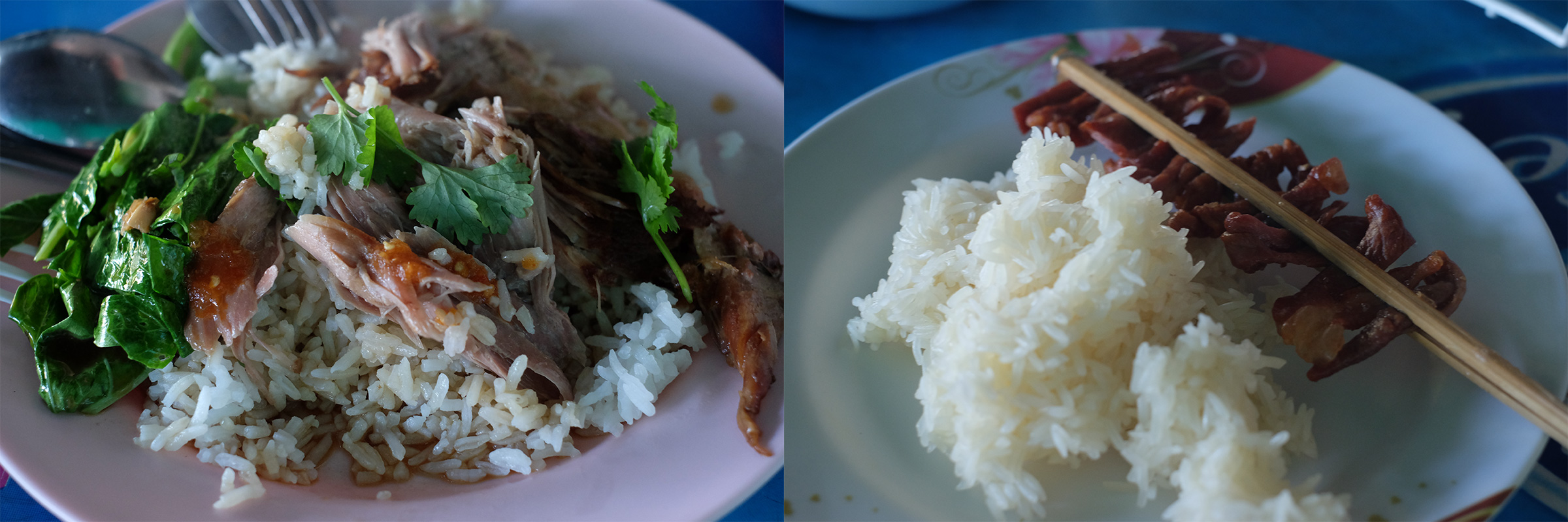 ส่งกระเป๋าเรียบร้อย ก็ถึงเวลาไปกินข้าวเช้า วันนี้ไปที่ร้านพี่คนแรก หลักสูตรการให้กระเป๋าผ้านี่ได้ผลจริงๆ เราสองคนก็ต้องเอากระเป๋าผ้ากลับไปคืน ครั้นจะกลับไปคืนเฉยๆก็คงจะแปลก เลยต้องกินข้าวเช้าที่ร้านพี่เค้า วันนี้พี่เค้าทำข้าวขาหมู เราเอาวุ้นเส้นต้มยำ กับโอวัลตินมาขอน้ำร้อนพี่เค้า พี่เค้าก็ไม่ได้คิดตังเพิ่ม เลยสั่งข้าวเหนียวหมูแดดเดียวพี่เค้าไปอีกจาน ตั้งแต่อยู่บนภูรู้สึกติดการกินข้าวเหนียวมาก มีข้าวเหนียวเมื่อไหร่จะรู้สึกอร่อย มีความสุขเมื่อนั้น