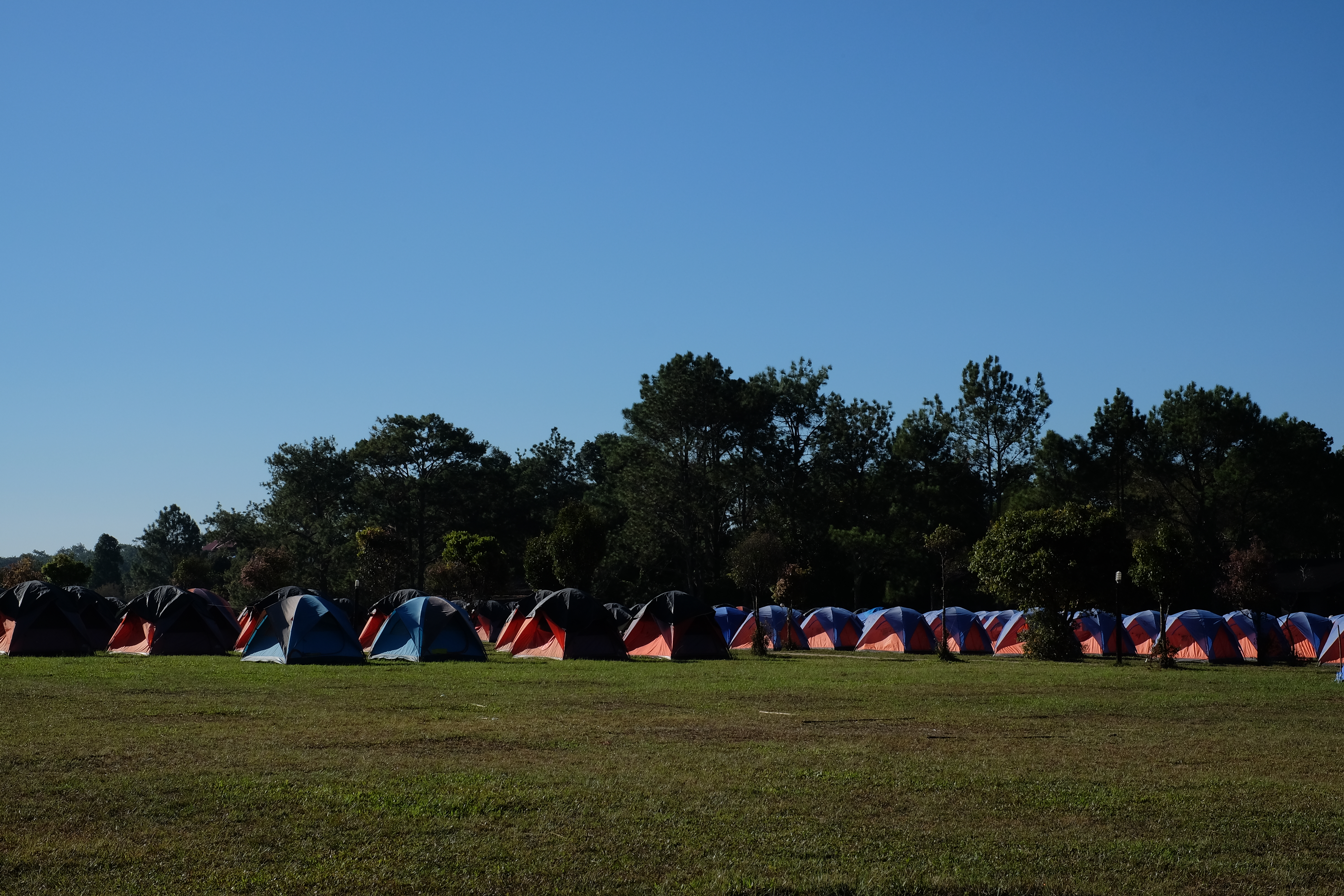 กลับมาถึงมากินโจ๊กร้อนๆ อากาศเริ่มอุ่นขึ้นบ้าง พอกลับถึงเต็นท์นี่ แทบจะอยู่ในเต็นท์ไม่ได้ เพราะแดดส่องแรงสุดๆ รีบจัดอุปกรณ์ Headlamp เสื้อหนาว น้ำ ชีสบอล ข้าวเหนียวหมู มีทั้งหมูกระเทียม และหมูแดดเดียว ที่ขาดไม่ได้คือแจ่วที่เหลืออีกหนึ่งถุงจากร้านประสิทธิ์โภชนา