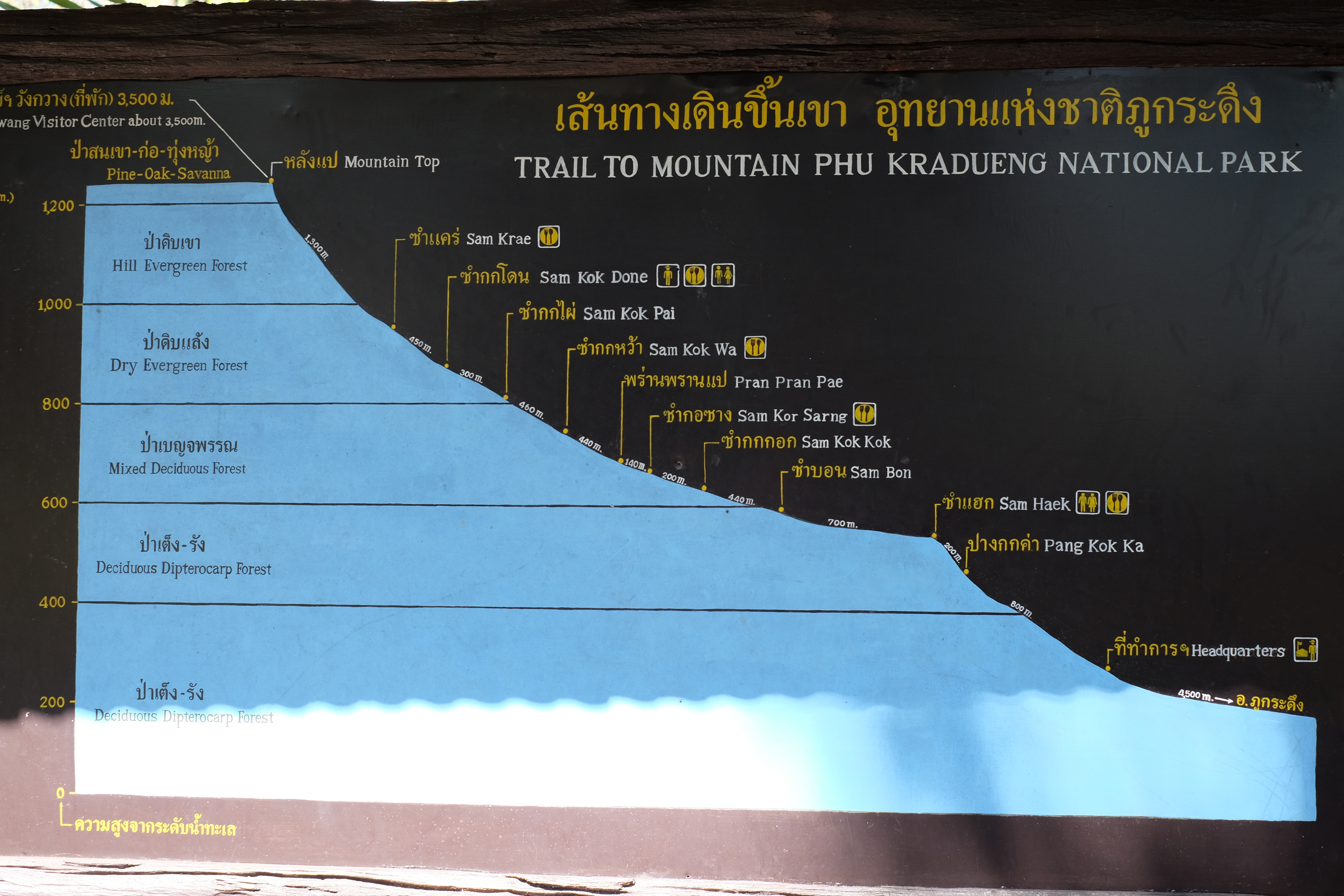 ในที่สุดก็ได้เวลาออกเดินทางขึ้นสู่ภูกระดึง พวกเราไปลงทะเบียนเขียนชื่อ เริ่มขึ้นภูตอน 13.20 น. อากาศไม่ร้อนมาก แม้แดดจะแรงสุดๆ เดินไต่ขึ้นมาเรื่อยๆ ครั้งนี้รู้สึกเลยว่าความฟิตลดลงจากมาครั้งที่แล้วมาก ระหว่างเดินรู้สึกถึงความเหนื่อย ประกอบกับกำลังเป็นไซนัสอยู่จมูกตันหายใจไม่สะดวก เสียงหายใจหอบดังมาก ถ้ามีคนเดินผ่านมา คงตกใจ เราสองคนเดินกันไปเรื่อยๆ ไม่ค่อยได้หยุดพัก เดินผ่านคนมาสักสามสี่กลุ่มเล็กๆ คนไม่ค่อยเยอะมาก เดินมาเรื่อยๆจนถึงซำแฮก แวะกินน้ำโซดามะนาวคนละสองแก้ว แม่ค้าใจดี แถมแตงโมฟรีมาให้กินด้วย ไม่รู้ว่าแม่ค้ามั่วหรือความจำดี อยู่ๆก็ทักว่าเคยมาแล้วใช่มั๊ย จำได้ พอเค้าทักเราก็รู้สึกคุ้นๆว่าครั้งที่แล้วก็มานั่งกินร้านนี้จริงๆ นั่งพักพอหายเหนื่อย ก็เดินกันต่อไปเรื่อยๆ