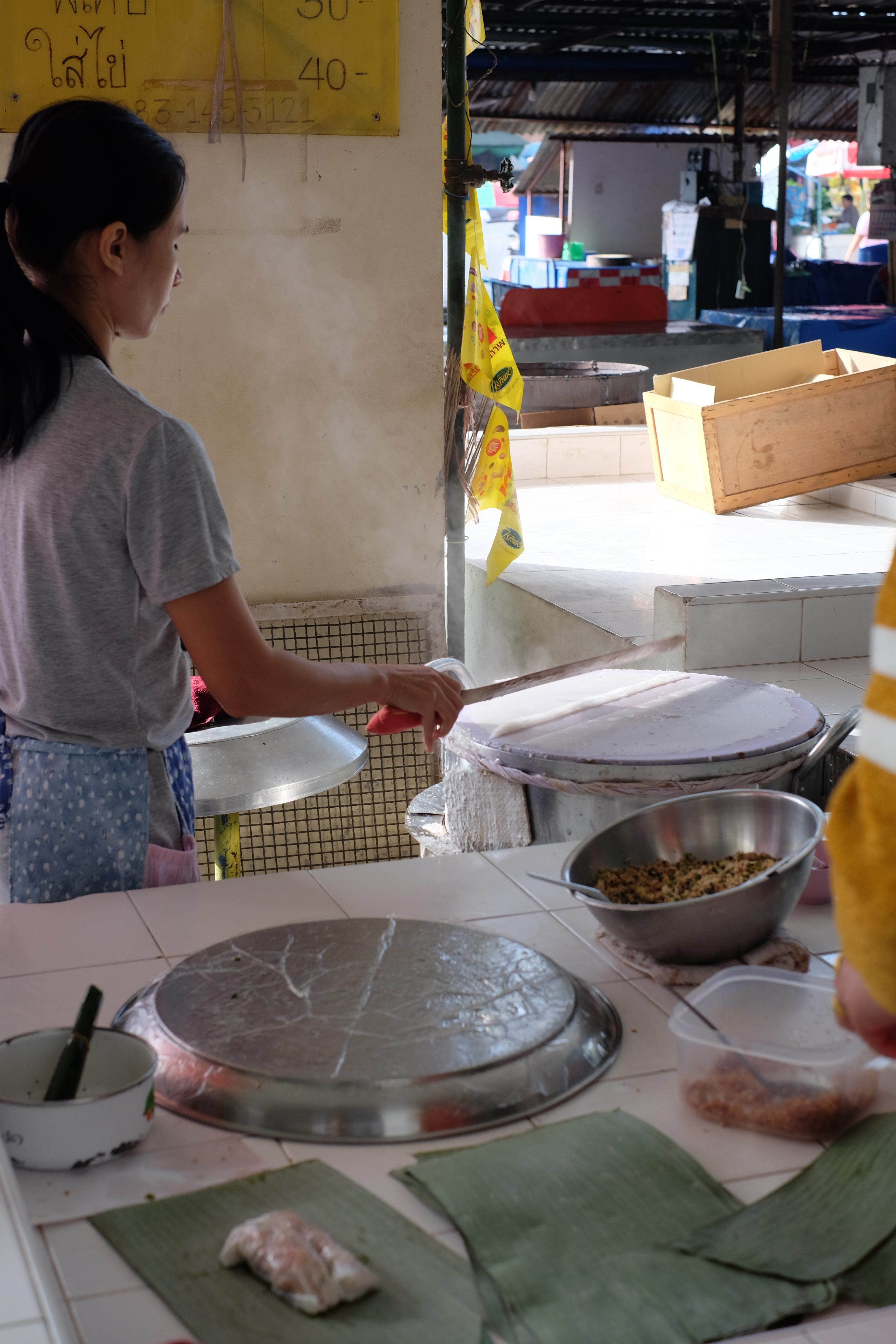 กินเสร็จยังจุใจเพราะยังไม่ได้กินข้าวเกรียบปากหม้อตั้งแต่เมื่อวาน เลยตัดสินใจเดินไปดูที่ตลาดเช้า เพราะตลาดก็อยู่ไม่ไกลมากประมาณ 200 เมตร ไปถึงที่ตลาดเช้า คึกคักมาก ชาวบ้านเต็มไปหมด แต่ส่วนใหญ่จะขายแต่พวกผัก แล้วก็ของสด ดีที่ตาดี เห็นร้านข้าวเกรียบปากหม้ออยู่ด้านใน ซื้อกลับมากินที่โรงแรม รสชาติอร่อย เหมือนอีกร้านที่ตลาดเย็นเลย ขากลับอยู่ที่ตลาด เลยเรียกรถตุ๊กๆกลับมาได้ ลุงคิดคนละ 20 บาท สงสัยจะเป็นราคามาตรฐาน กลับมาถึงหน้าโรงแรม แฟนอยากกินกาแฟ จริงๆที่โรงแรมก็มีขาย แต่โรงแรมบอกว่าต้องรอทำอีก 3-4 แก้ว สปีดก็ดูช้าสุดๆ เลยตัดสินใจเดินไปที่ร้านภูเลยกาแฟที่อยู่ไม่ใกล้ ได้กาแฟมา กลับมานอนกินพร้อมข้าวเกรียบปากหม้อบนห้อง รู้สึกเพลียเหลือเกิน แต่นอนกลิ้งไปกลิ้งมา ยังไม่ทันจะหลับ ก็ถึงเวลาต้องไปสนามบินแล้ว