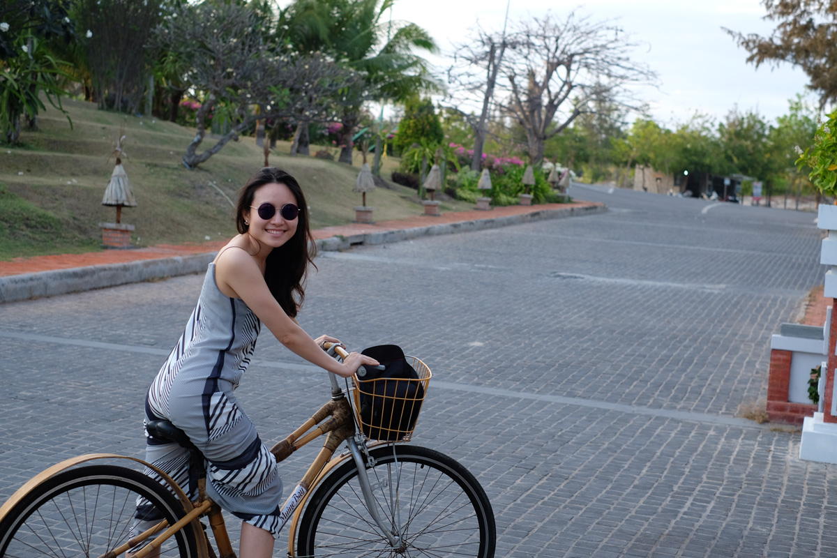 คนขับรถแท๊กซีพามาส่งถึงโรงแรมประมาณ 5 โมง แฟนจ่ายเงินให้แท๊กซี่ไป 5 แสนดอง แท๊กซี่บอกว่าขอไม่ทอนได้มั๊ย พวกเราก็โอเค เพราะถือว่าให้เป็นทิปคนขับรถไป พอกลับด้วยความที่เห็นว่ายังมีเวลาเหลือ เลยคิดว่าน่าจะไปดู Fisherman Village และ Fairy Stream ไปเลย ด้วยความที่เห็นว่า Fairy Stream ซึ่งเป็นจุดห่างออกไปจากโรงแรมประมาณ 5 กม. อยู่ไม่ไกลมากนัก จึงตัดสินใจว่าจะขึ่จักรยานไป (ค่าเช่าจักรยานโรงแรมคิดคนละ 10,000 ดอง) ซึ่งไม่รู้จะถือว่าคิดถูกหรือผิด เพราะการแต่งตัวก็ไม่ได้ให้กับการขี่จักรยานสักเท่าไหร่ ประกอบกับช่วงนี้ไม่ค่อยได้ออกกำลังกาย ประจำเดือนก็มา ทำให้ตอนขี่ไปแทบจะถอดใจอยู่หลายครั้ง แต่ประสบการณ์ที่ได้มานั้นก็สนุกอยู่ไม่น้อย คือการขี่จักรยานบนถนนเวียดนาม ถึงแม้ว่าจะไม่ใช่ HCMC และรถจะไม่เยอะเท่า แต่ก็ได้บรรยากาศเดียวกัน คือขี่ไปโดนบีบแตรไปตลอดทาง ซึ่งตรงนี้ก็เปลี่ยนให้พวกเราเป็นคนจิตแข็ง และเข้าใจการขับรถของคนเวียดนามเพิ่มขึ้นมาก เลยเข้าใจว่าถ้าไม่ทำตัวจิตแข็งก็คงขับไม่ได้ คือการบีบแตรของเค้า ไม่ว่าจะสั้นหรือยาว เข้าใจว่าเป็นการเตือนให้ระวัง ทำอะไรอยู่ก็ให้อยู่อย่างนั้น อย่ายึกยัก แล้วเดี๋ยวคนที่เข้าบีบแตรใส่ เค้าจะหาทางหลบเราไปเอง