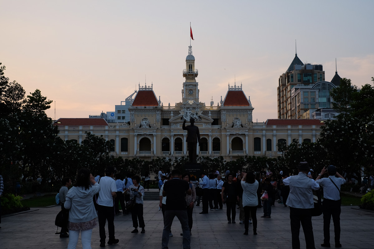 ลงมาจาก Apartment Cafe ก็เริ่มเย็น อากาศไม่ร้อนเหมือนตอนกลางวันแล้ว พวกเราเดินเล่นที่ Nguyen Hue เดินมาจนสุดทาง ที่รูปปั้น Ho Chi Minh นักท่องเที่ยวหลายเชื้อชาติ มายืนถ่ายรูปกันเต็มไปหมด