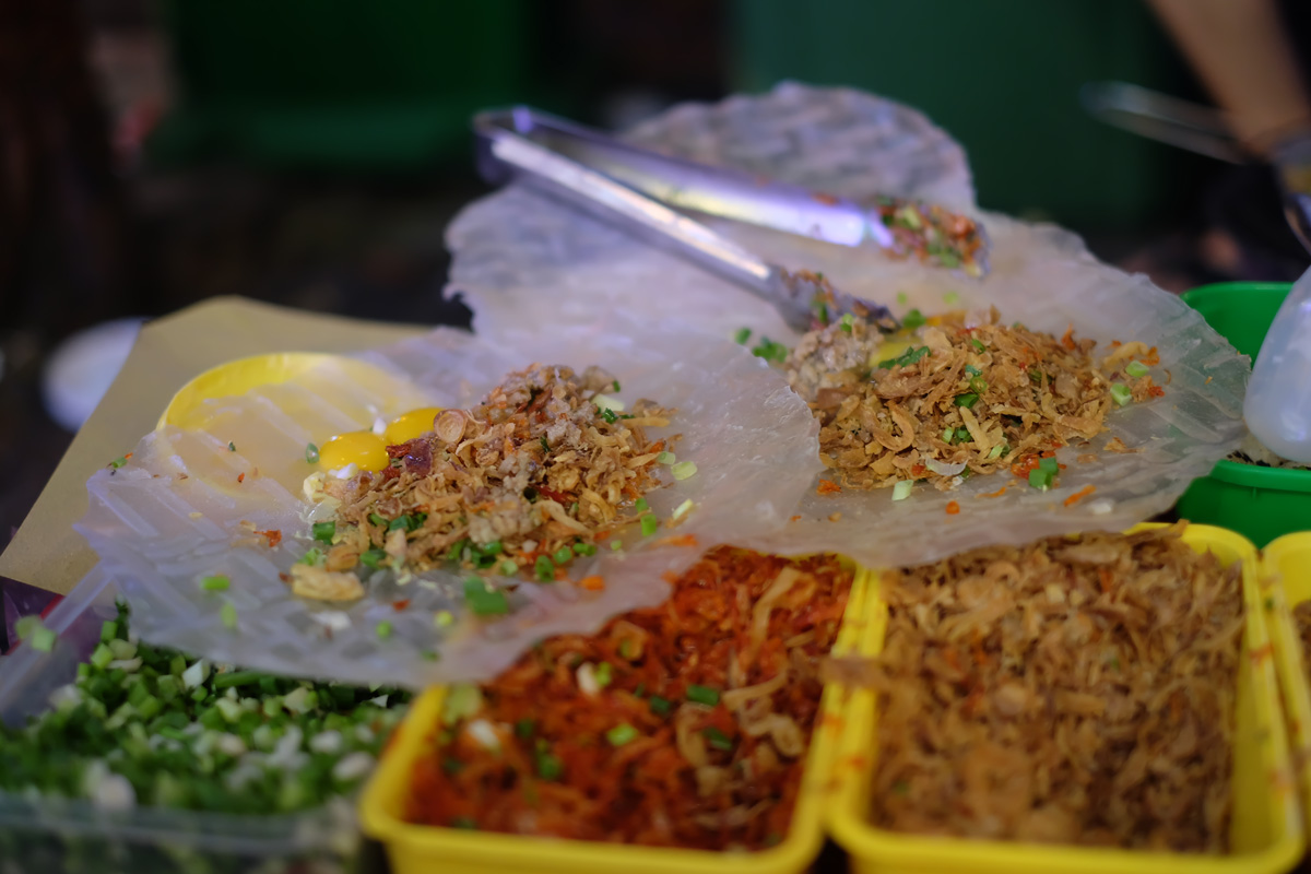 เราจบค่ำคืนนี้ด้วยการกินชานมไข่มุกร้านโปรด Share Tea และการกิน ฺBanh Trang Nuong (เป็นเหมือนแผ่นปอเปี๊ยสดเอาไปย่างใส่ไข่ใส่เครื่องต่างๆ)