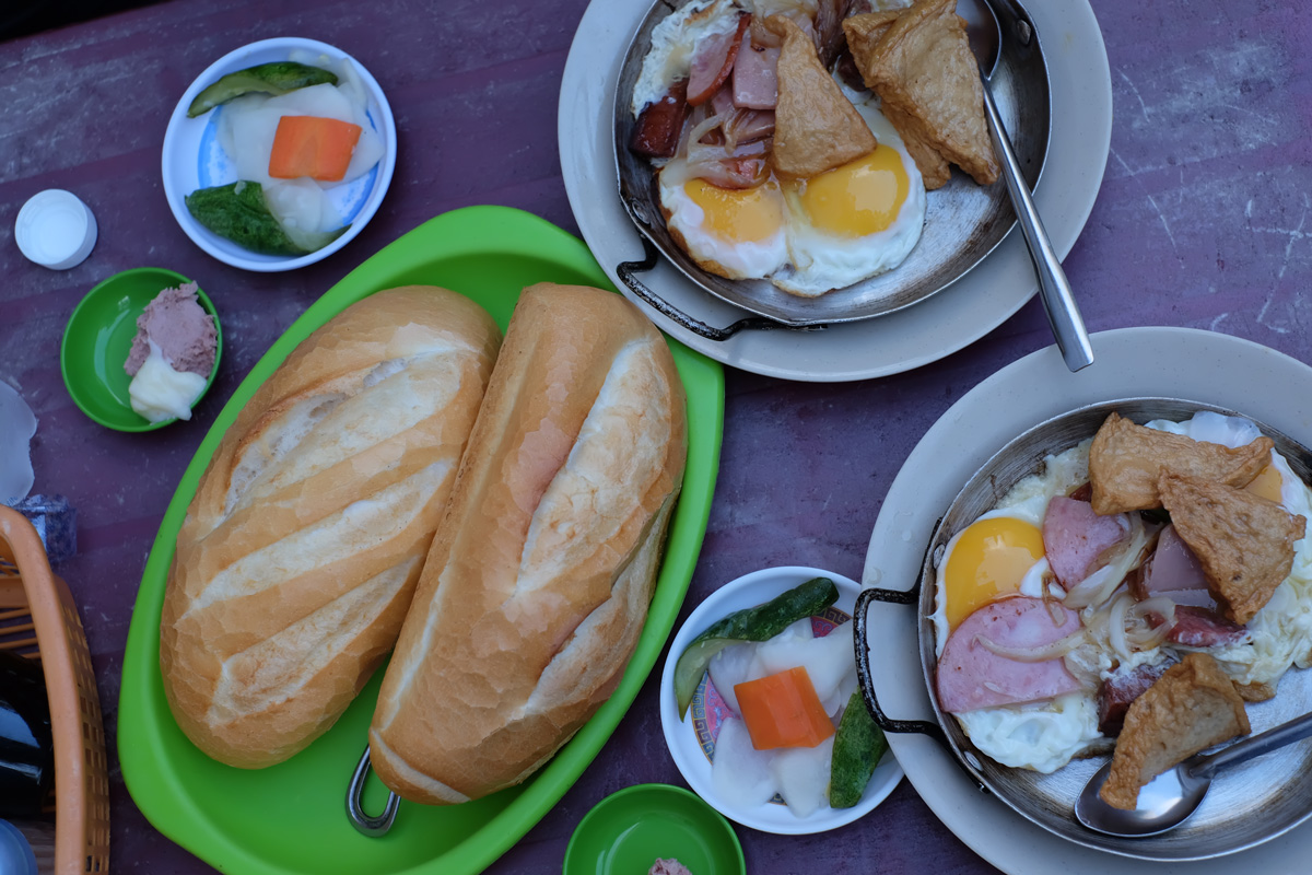 เช้าวันนี้ตื่นเช้ามา ตั้งใจพาแฟนไปกินไข่กะทะตามความอยากกินของแฟน เพราะแฟน search ดูมาจากตอนกลางคืน ชื่อร้าน Banh Mi Hoa Ma ร้านนี้ก็ขาย Banh Mi เหมือนร้านแรก แต่สิ่งที่อยากมากินคือไข่กระทะ พอสั่งไข่กระทะ เค้าก็จะให้ขนมปังฝรั่งเศส พร้อมตับบดมาด้วย บรรยากาศร้านจะเป็นโต๊ะเตี้ยๆแบบบ้านๆ มาถึงไม่มีโต๊ะไม่ต้องตกใจ โต๊ะที่นี่เฮียสามารถสั่งให้ตั้งเพิ่มได้ตลอด