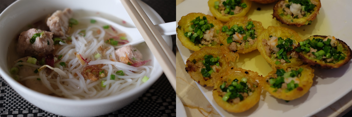 พอเก็บของเข้าห้องเรียบร้อยพวกเราก็ออกมาหาอะไรกิน การเดินทางในเมืองก็แสนจะสะดวกสบายด้วยการเรียก Uber Uber ที่นี่ดีมาก เหมือนรถจะมีเยอะ เรียกตรงไหนก็รอไม่เกิน 3 นาที รถก็มาถึง แถมไม่ต้องโทรไปมาเหมือนที่ไทยก็มาเจอตามหมุดที่ปักไว้ได้ตรงทุกครั้ง ราคาก็ถูกแสนถูกเริ่มต้นที่ประมาณ 28 บาท แพงสุดที่นั่งก็คือ 60 บาท (นั่งประมาณ 4 โล บวกกับรถติด) ร้านแรกชื่อ Bếp Nhà Xứ Quảng ตั้งใจไว้เลยว่าจะมากินร้านนี้ เพราะครั้งที่แล้วที่มาทำงานที่ HCMC ได้กินแล้วยังติดใจอยู่ พวกเราสั่งอาหารทั้งหมดไป 5 อย่าง มีซุปปูด้วยอีกอันนึง แต่คนเสิร์ฟบอกว่าให้สั่งแค่ 4 อย่างพอ แต่เราก็ยังยืนยันว่าจะเอาอย่างที่ 5 ด้วย พออาหารแต่ละจานทยอยออกมาก็เริ่มเข้าใจ อาหารจานใหญ่มาก สุดท้ายคือ คนเสิร์ฟก็ไม่เอาจานที่ 5 มาให้จริงๆ ก็ถือว่าเป็นโชคดีไป เพราะแค่ 4 จานนี่ก็อิ่มมากแล้ว