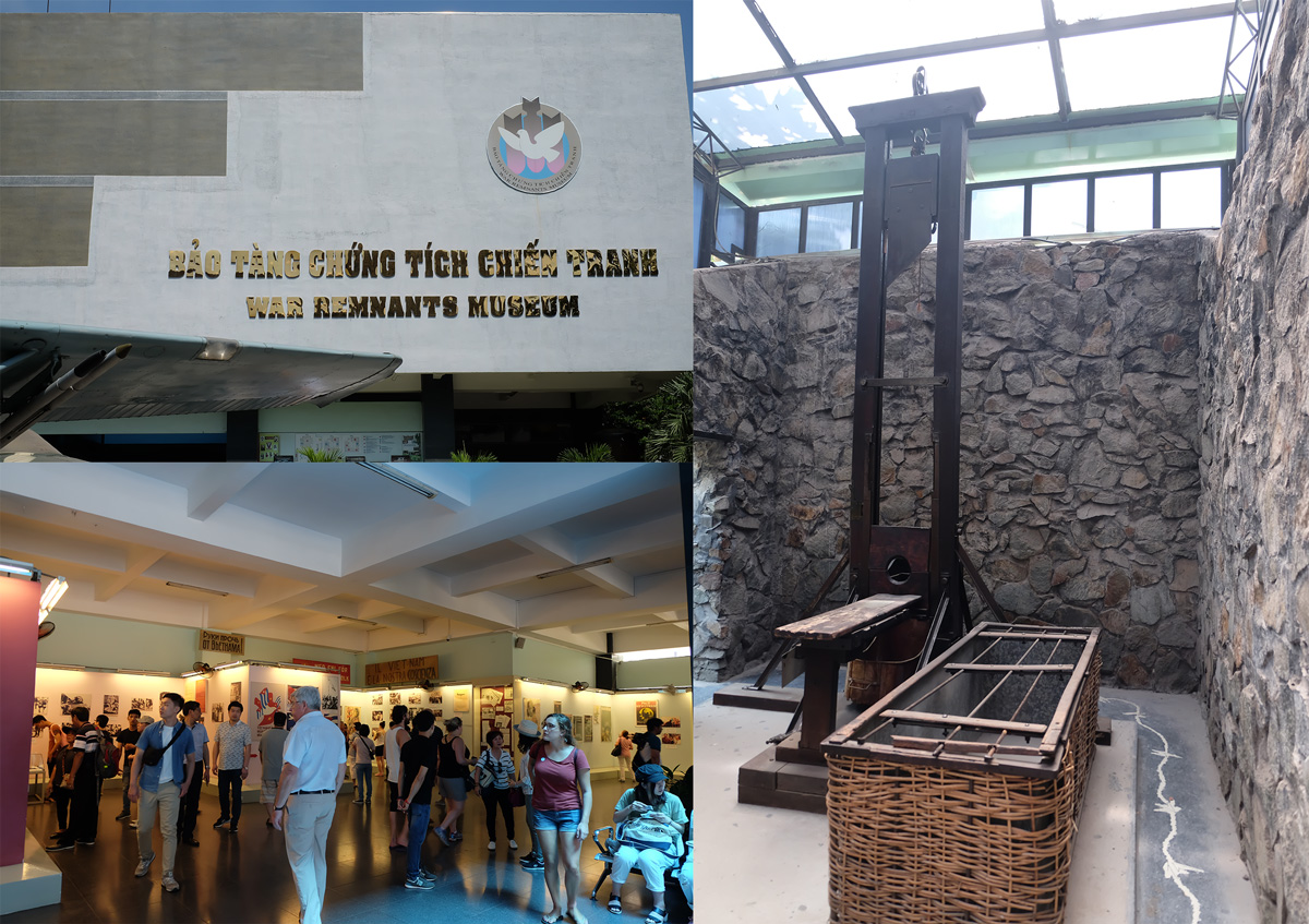 กินเสร็จกับโรงแรมมาอาบน้ำแต่งตัวเตรียม Check-Out ฝากกระเป๋าไว้ที่โรงแรม จากนั้นก็เรียก Uber ไปต่อที่ War Remnants Museum เป็นพิพิธภัณฑ์ที่แสดงให้เห็นถึงแง่มุมต่างๆของสงครามที่ชาวเวียดนามต้องเผชิญ จุดที่ดูน่าตกใจและน่าเศร้าที่สุดน่าจะเป็นส่วนของที่จำลอง และเล่าถึงเหตุการณ์ในคุกนักการเมืองบนเกาะ Phu Quoc และ Con Son ที่นักโทษทางการเมืองจะต้องถูกจับขังและทรมานอยู่ในห้องขังที่เรียกว่า Tiger Cage เข้าไปในตัวตึกใหญ่ก็จะมีการแสดงรูปและโปสเตอร์เป็นส่วนใหญ่ มีส่วนที่เกี่ยวข้องกับการต่อต้านสงครามเวียดนามของประเทศต่างๆ รูปภาพทหาร ชาวบ้านและเด็กในสงคราม
