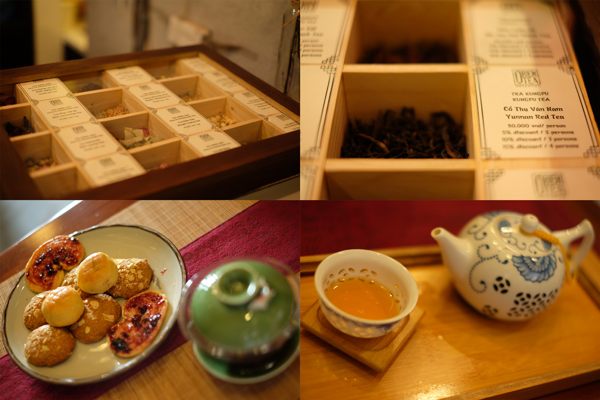 ร้านที่เลือกกินคือ ร้าน Orient Tea เพราะไม่อยากกินกาแฟกัน ร้านจะมีกล่องชาให้เลือกชาอยู่เต็มไปหมด ก็เลือกกันไปแบบ งงๆ จากตัวร้านสามารถมองเห็นวิวถนน Nguyen Hue ซึ่งเป็นถนนคนเดินที่มีร้านค้า ร้านอาหาร ร้านชากาแฟเรียงรายอยู่เต็มไปหมด ที่สุดถนนก็จะเป็นรูปปั้น Ho Chi Minh นักปฏิวัติคนสำคัญของเวียดนาม และตึก Central Post Office ที่มีการสร้างแบบสถาปัตยกรรมฝรั่งเศส ที่เป็น Tourist Attraction หลักของ HCMC นอกจากนี้ยังเห็นตึก Bitexco ซึ่งเป็นตึกที่สูงที่สุดใน HCMC อันนี้เค้าก็เปิดให้ขึ้นไปชมวิวด้วย แต่พวกเราไม่ได้ขึ้นไป